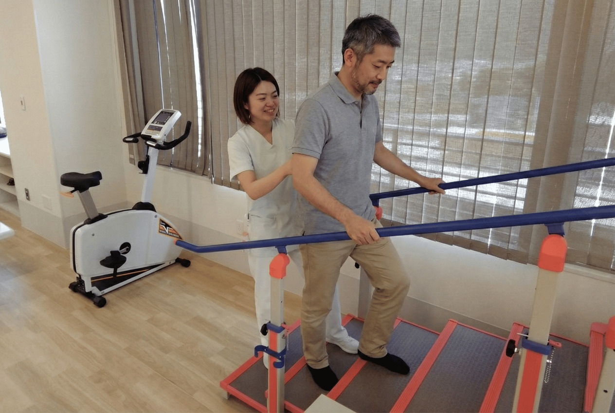 歩行訓練平行棒やT字杖などその方に合った手段を用い、歩行能力の向上を行います。